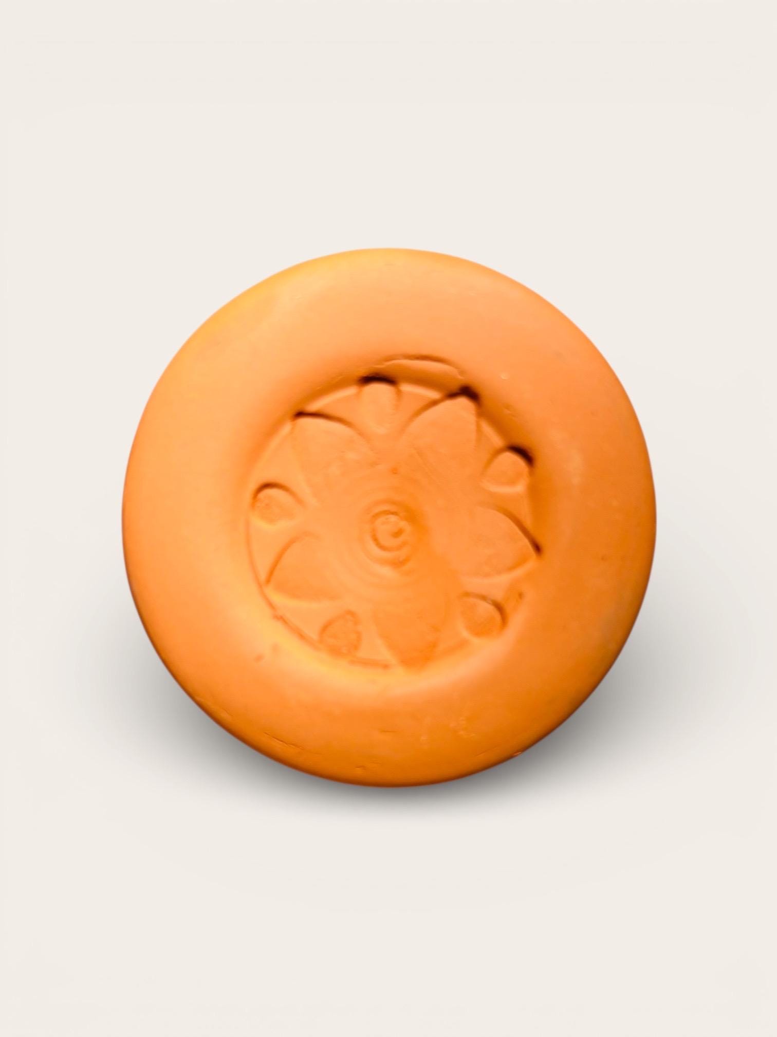 The stone is handcrafted from natural clay and has a diameter of approximately 4.5 cm (1.7 inches) and a thickness of 8–10 mm (0.3–0.4 inches). Each piece is unique and may vary slightly in color or texture. Through the rough clay pores, it absorbs water and gently releases it over several days.