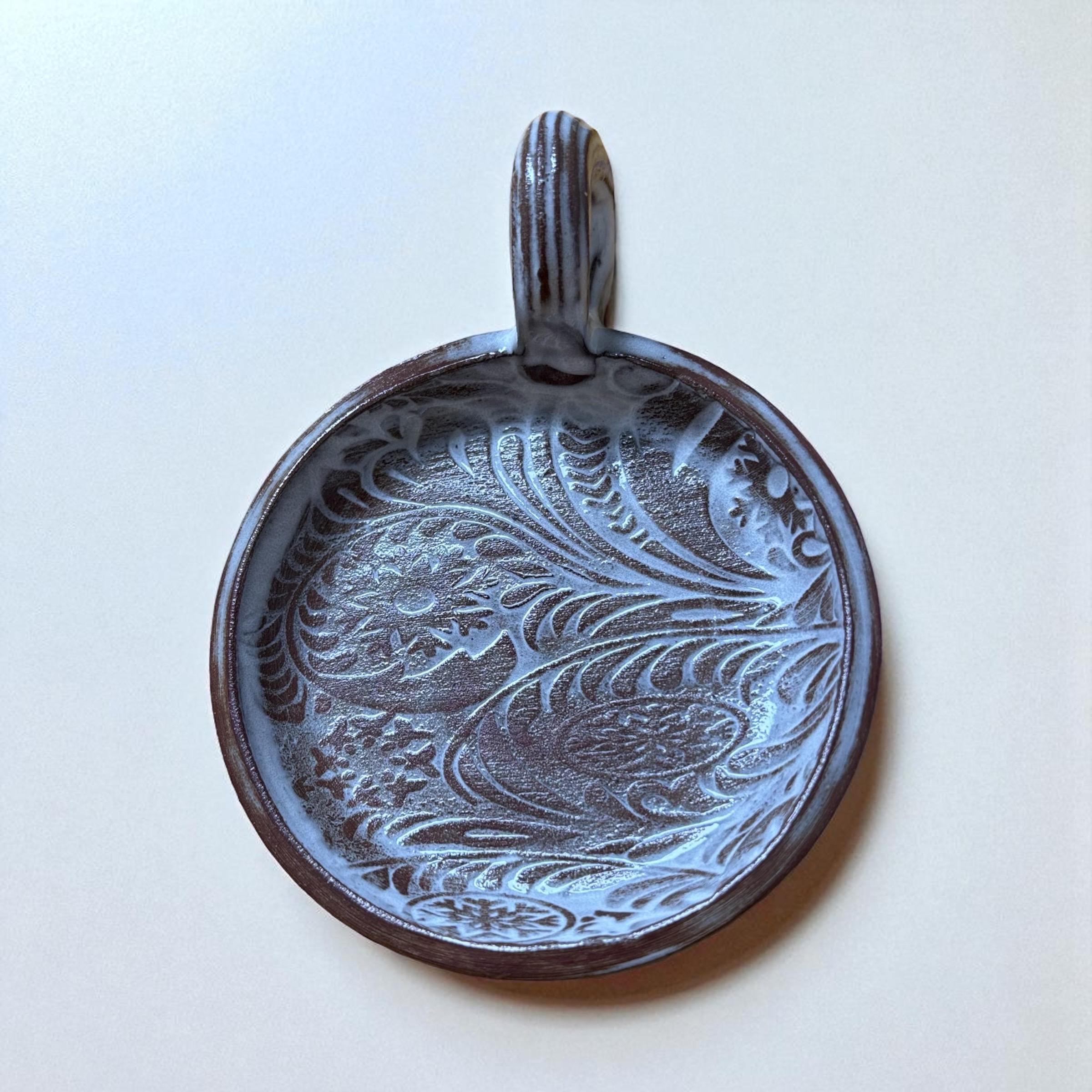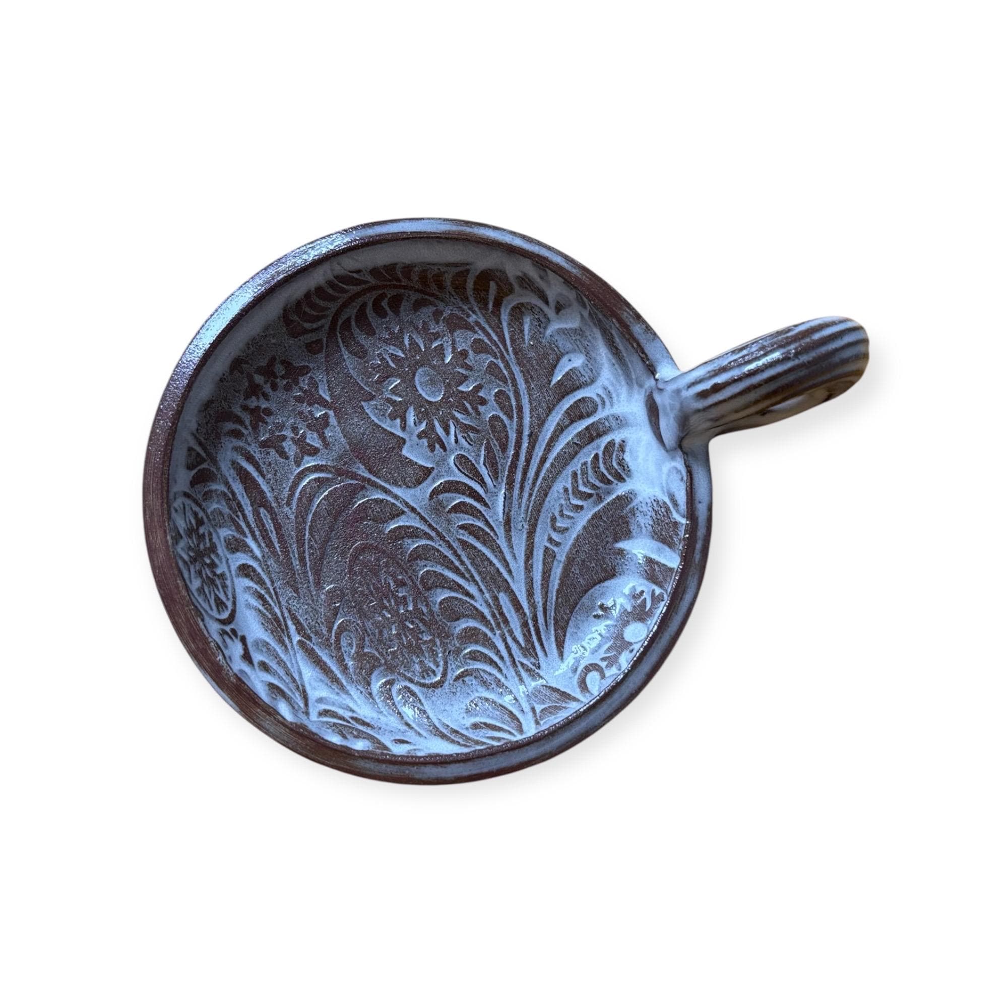 Dieser handgetöpferte Kerzenhalter trägt deine Stumpenkerze sicher – schlicht, griffig und mit feinem Muster, das diesmal noch stärker hervortritt. Der braune Ton schimmert sanft durch die Glasur und lässt die Oberfläche lebendig wirken – perfekt für gemütliche Abende, kleine Rituale oder als stimmungsvolle Herbst- & Winterdekoration.