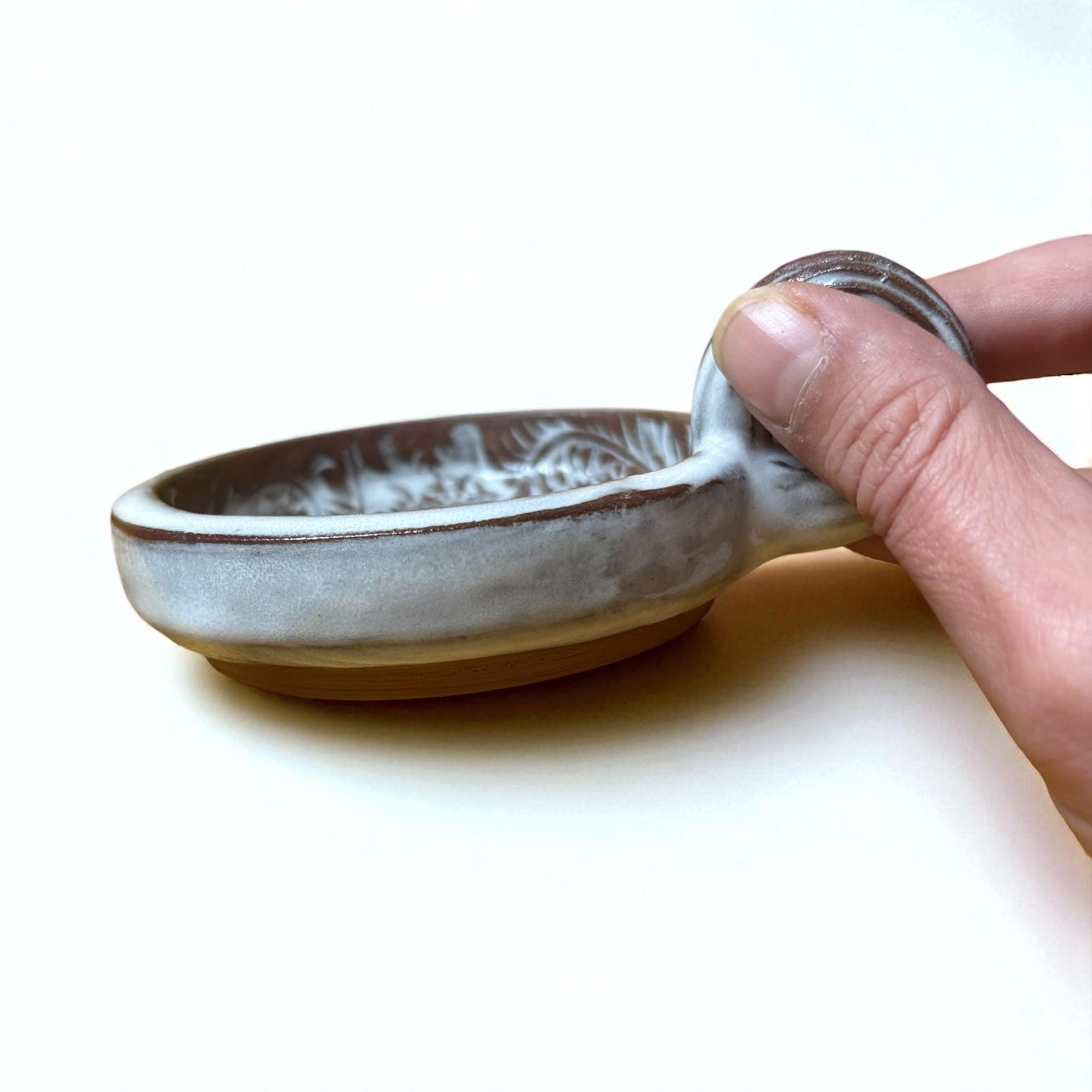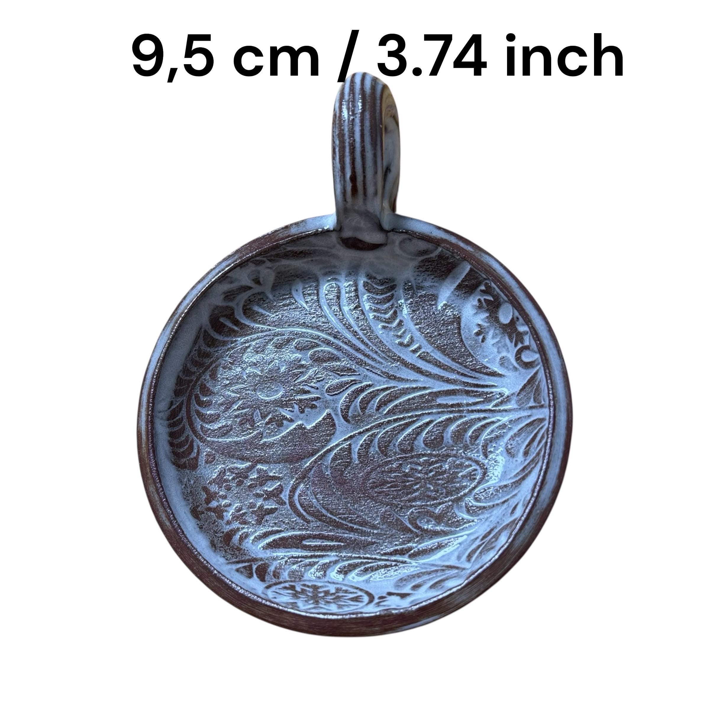 Variante 2: Ø ca. 8,5 cm (≈ 3.3 inch), Höhe ca. 1,5 cm (≈ 0.6 inch), mit Griff Gesamthöhe ca. 4 cm (≈ 1.6 inch)
