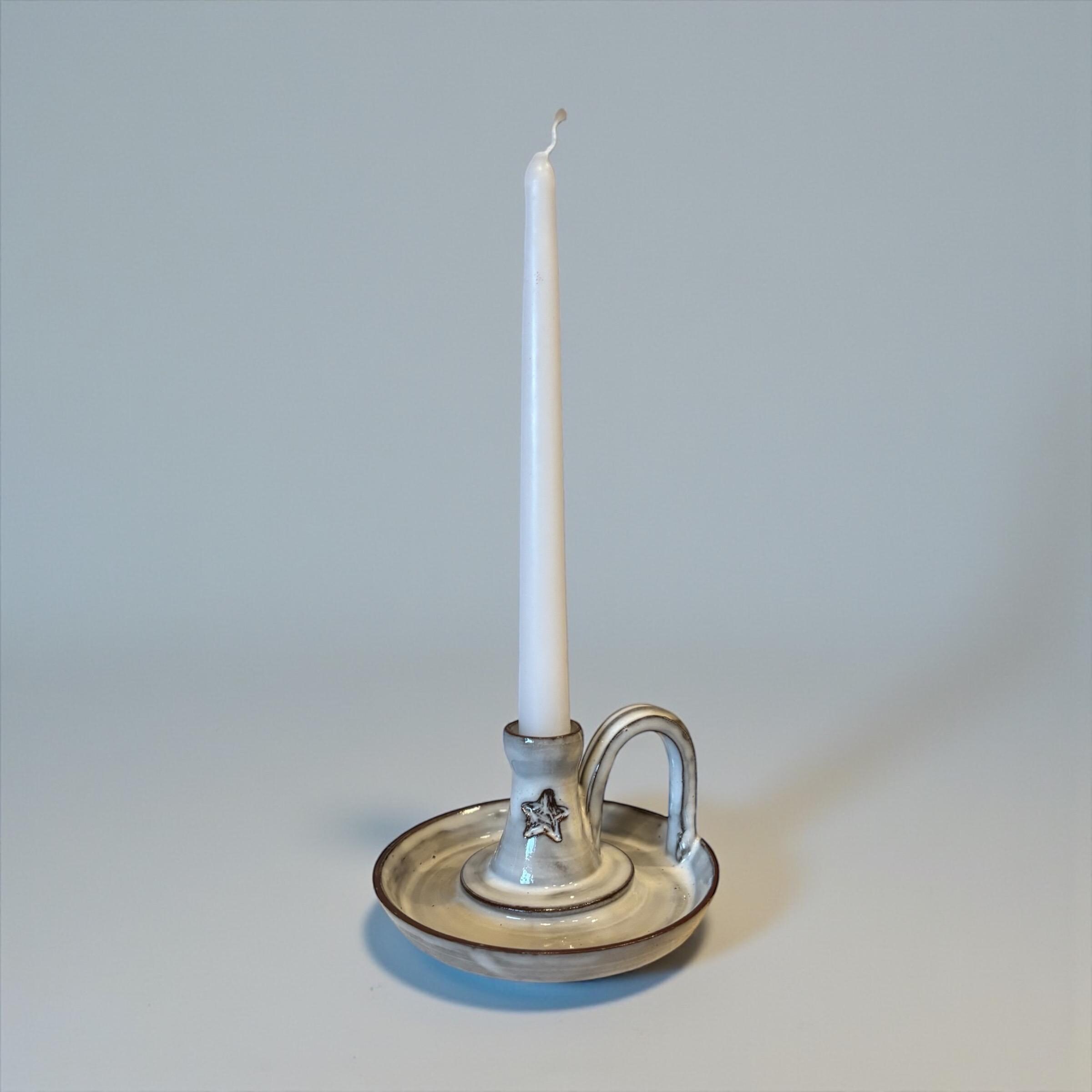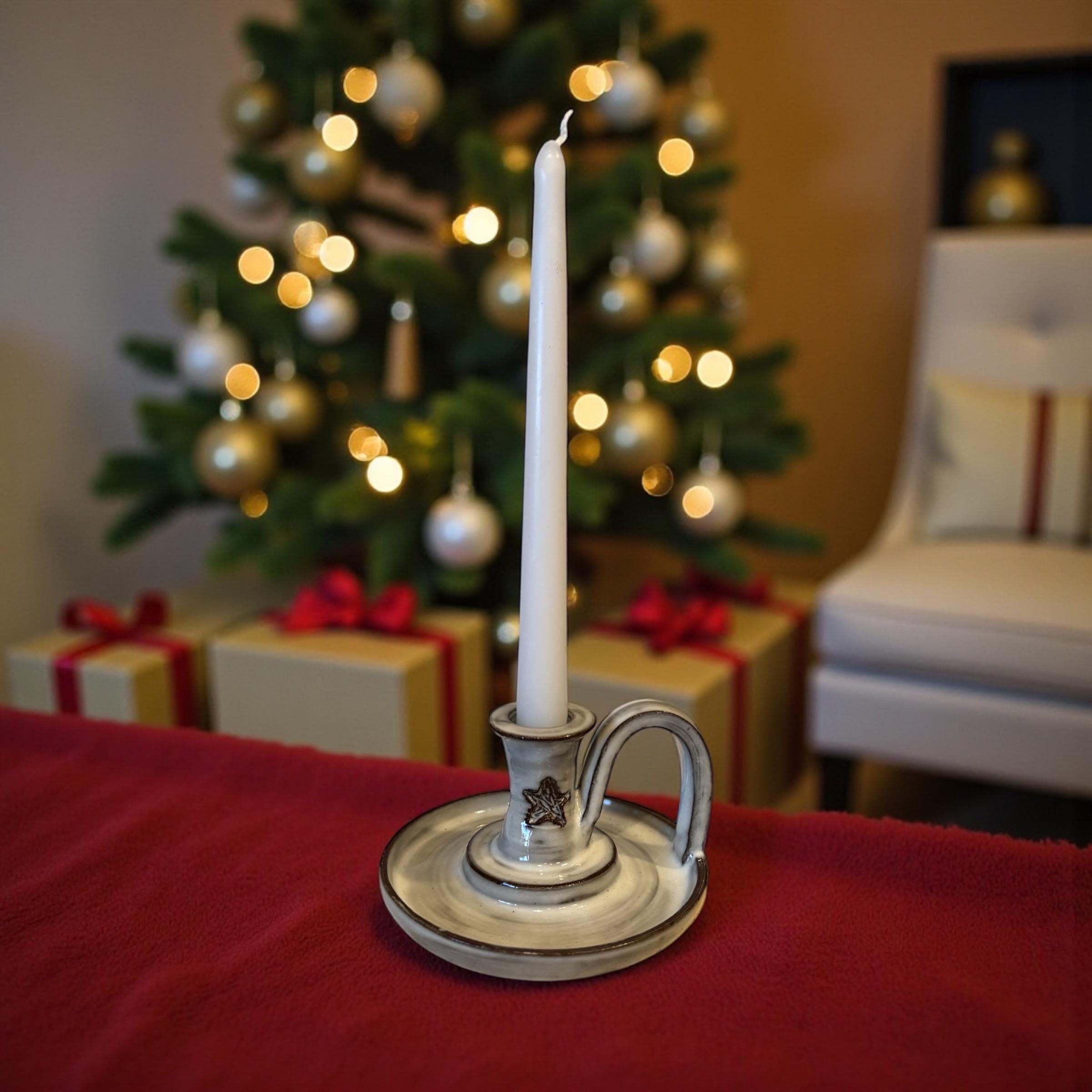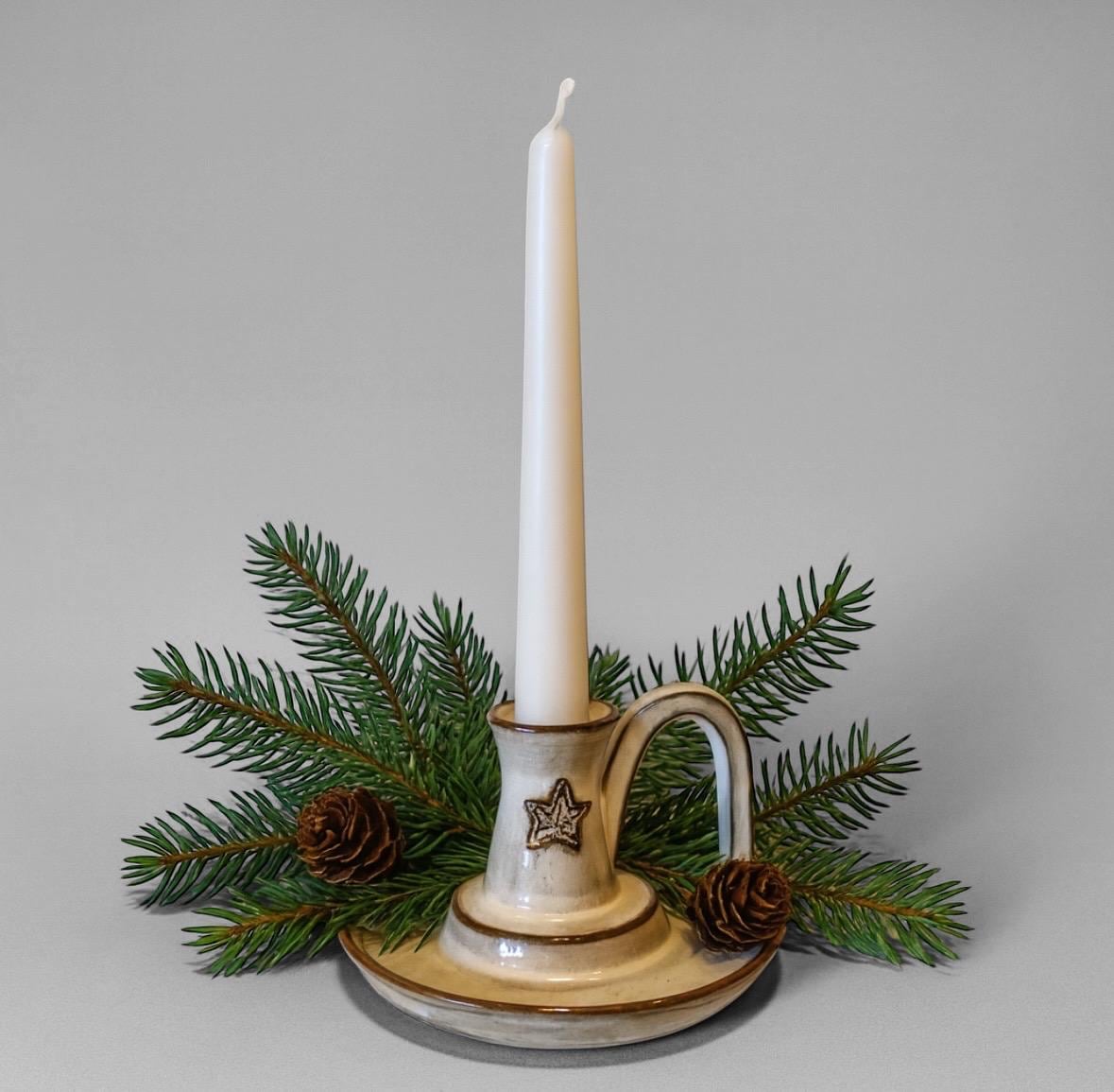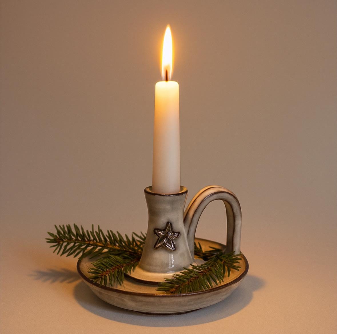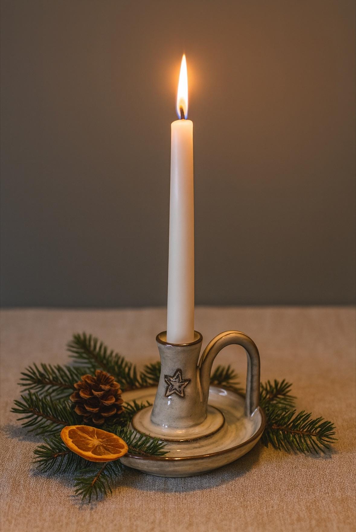 I threw this candle holder on the potter's wheel from natural brown stoneware clay and glazed it with a semi-transparent white glaze, allowing the natural texture to remain visible. Firing at 1190°C creates a surface that shines without being flashy – pure, timeless, and perfect for those who want to create a consciously minimalist Advent season.