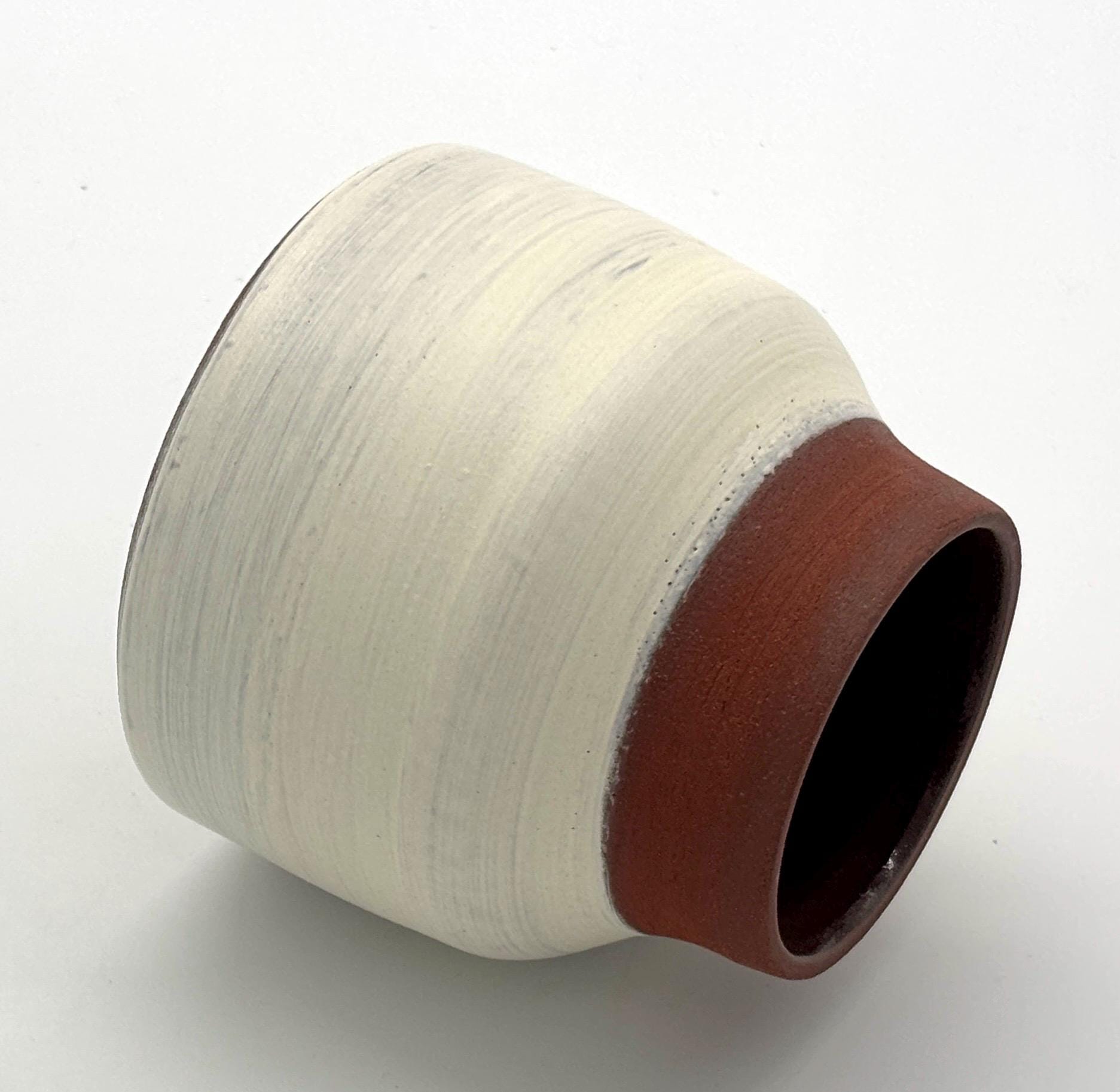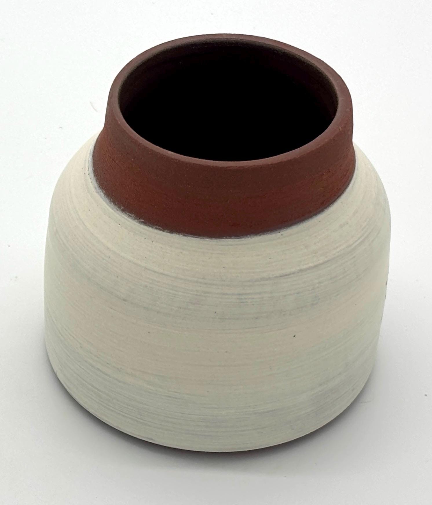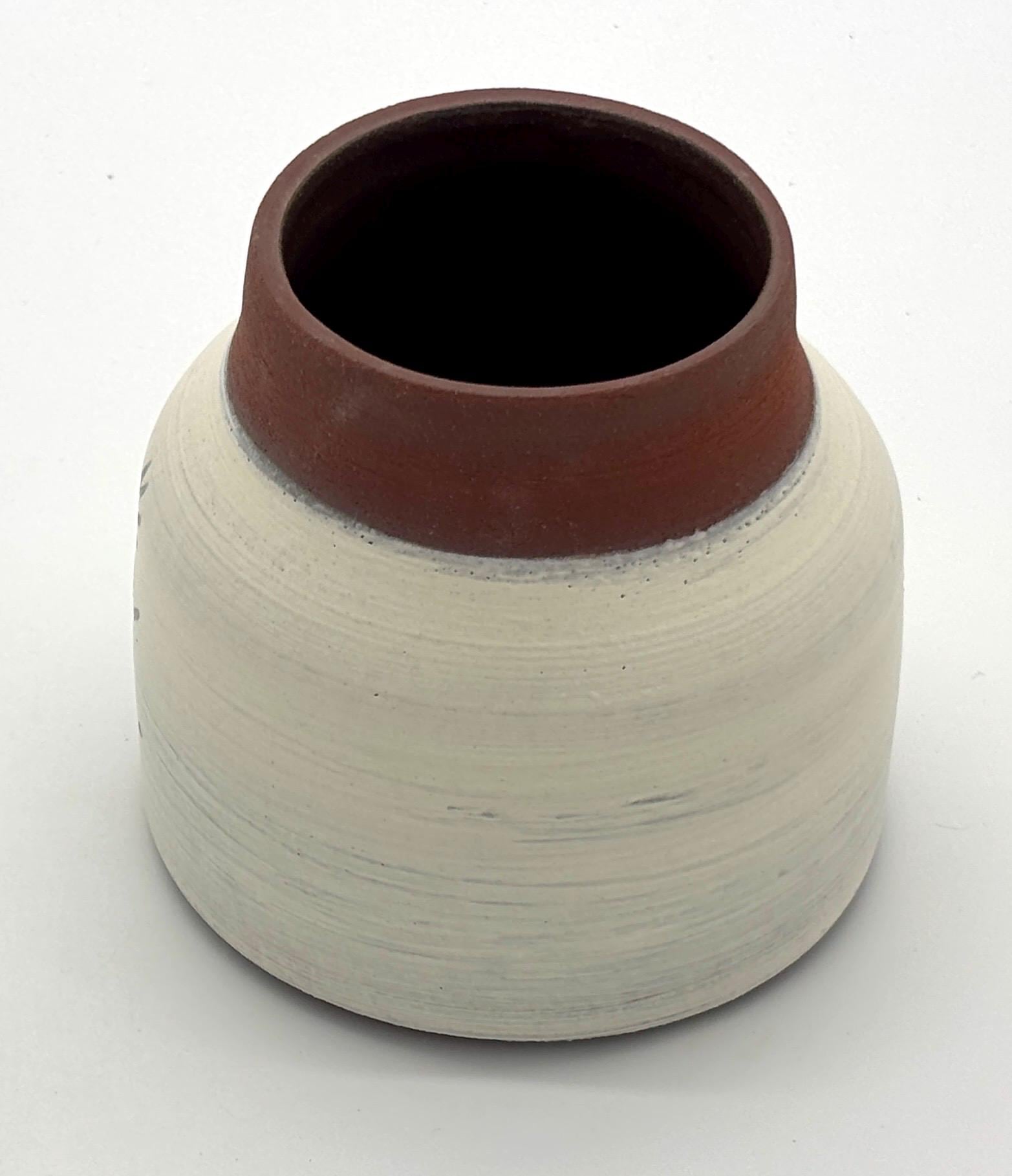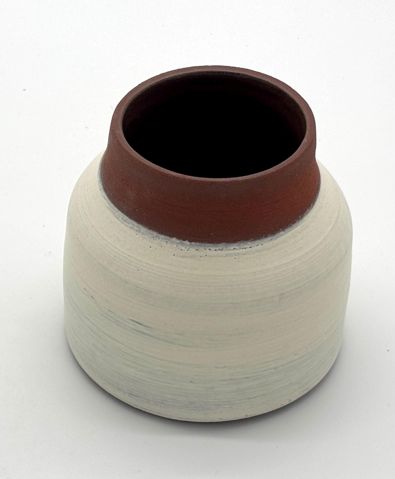 This hand-thrown ceramic vase from Studio MABA is part of a series – and yet a unique piece. Its soft, rounded shape and the calm color scheme of white and warm brown give it a light, almost natural appearance.