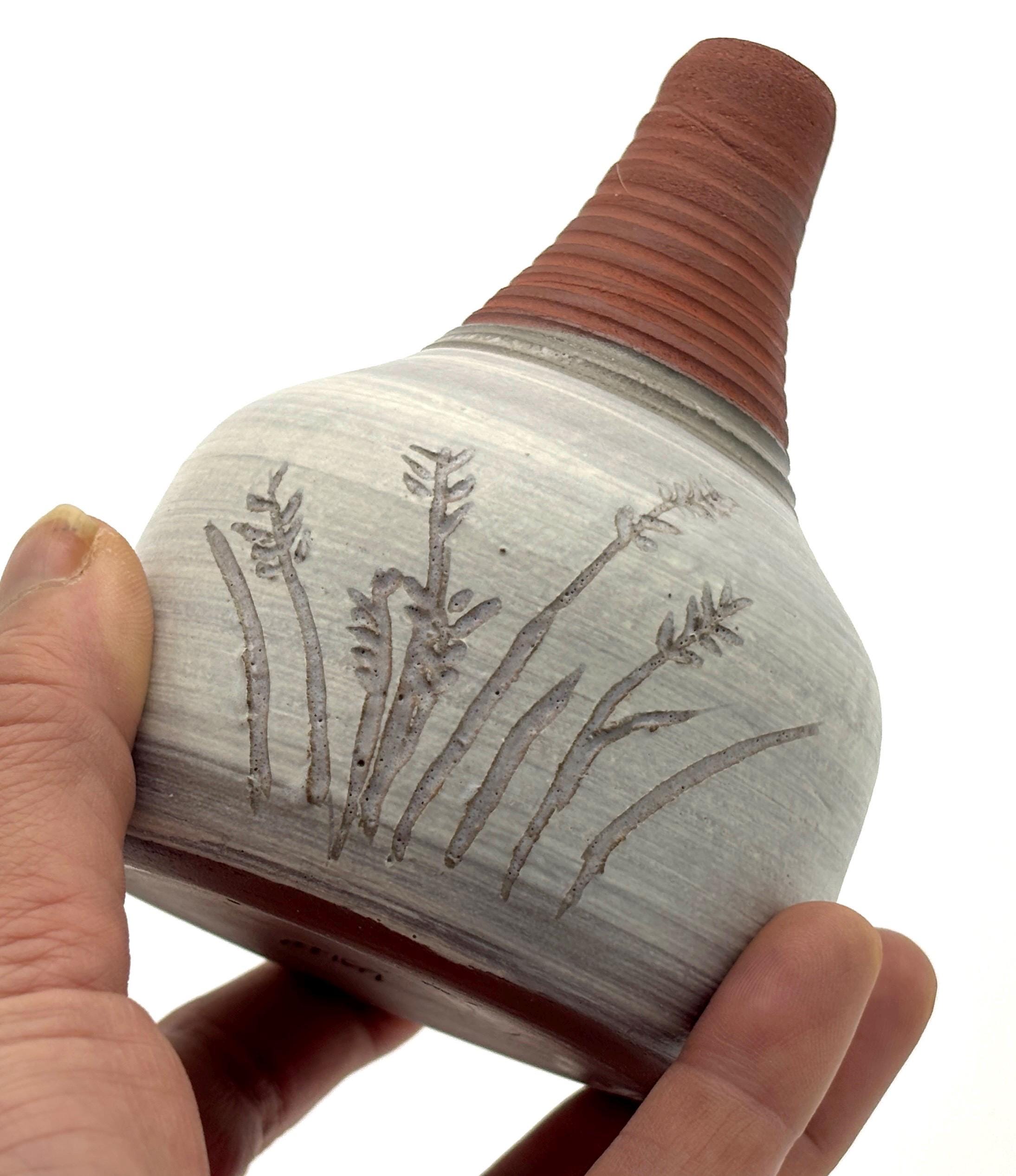 Vasen aus dem Grubenbrand und Raku sind nicht wasserdicht. Sie eignen sich für Trockenblumen oder als dekoratives Objekt.