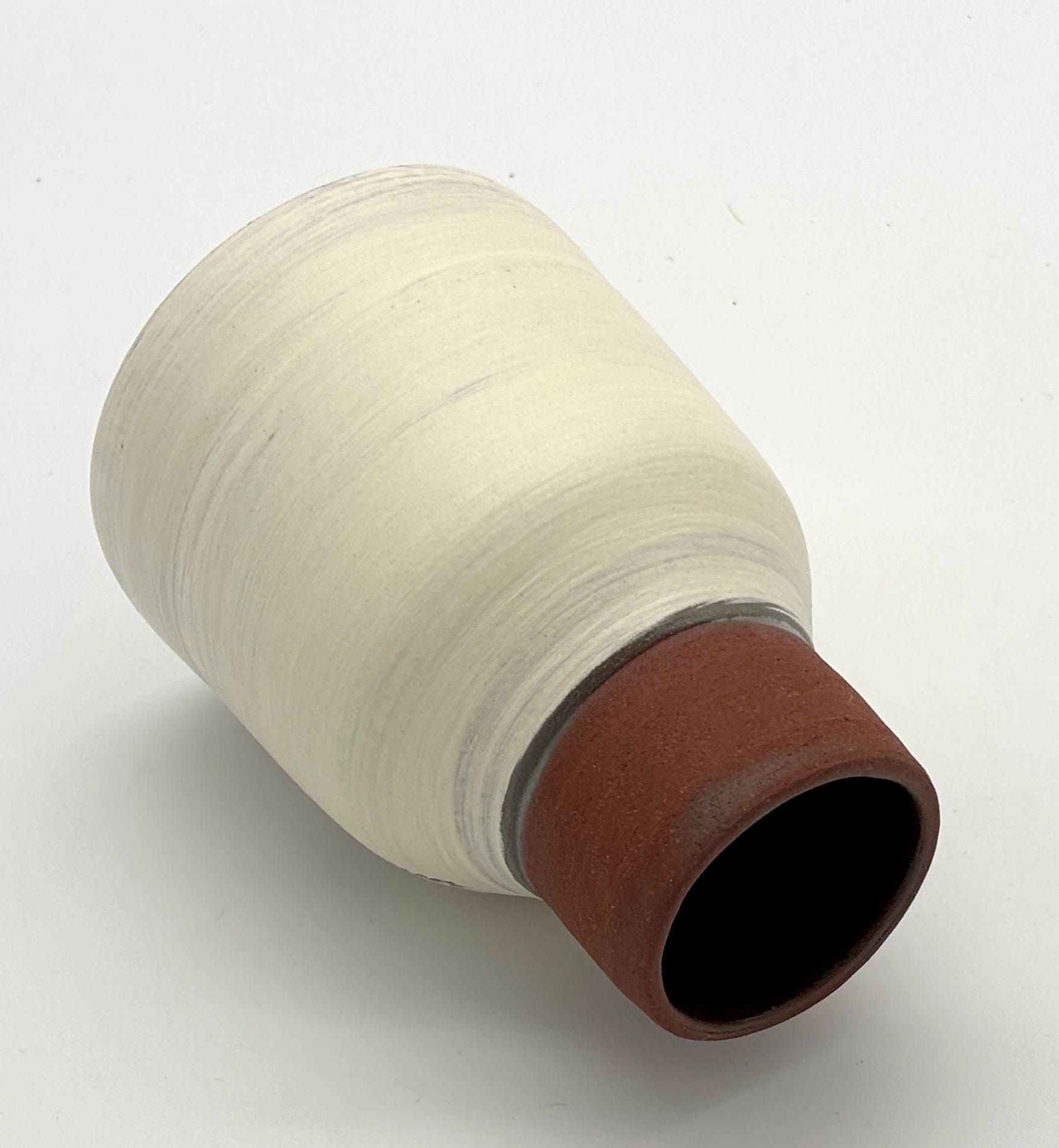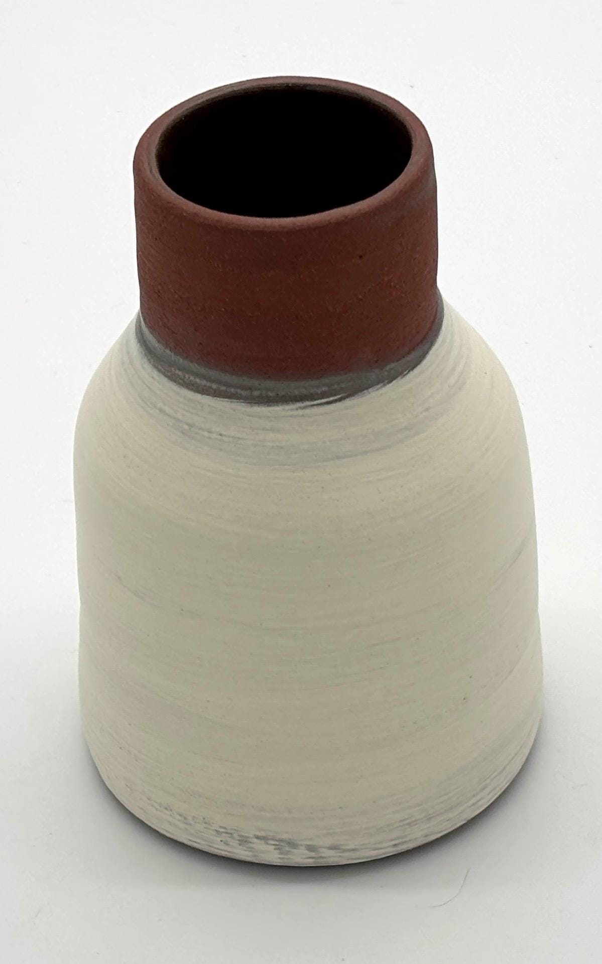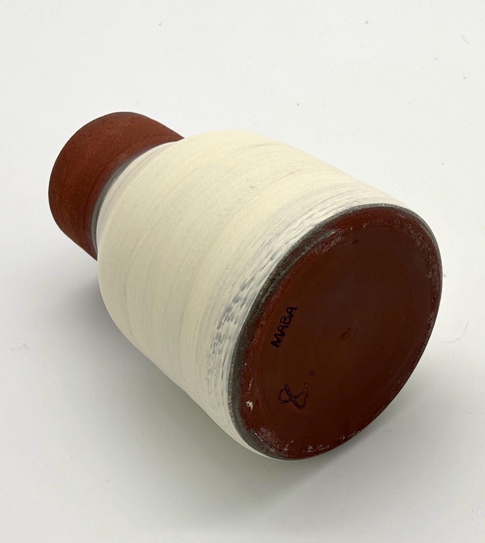 Diese handgetöpferte kleine Keramikvase aus dem Studio MABA ist ein echtes Unikat. Ihre Form wirkt bewusst schlicht, fast zurückhaltend – und genau darin liegt ihre Stärke. Sie fügt sich nicht nur ein, sie gibt dem Raum Ruhe.