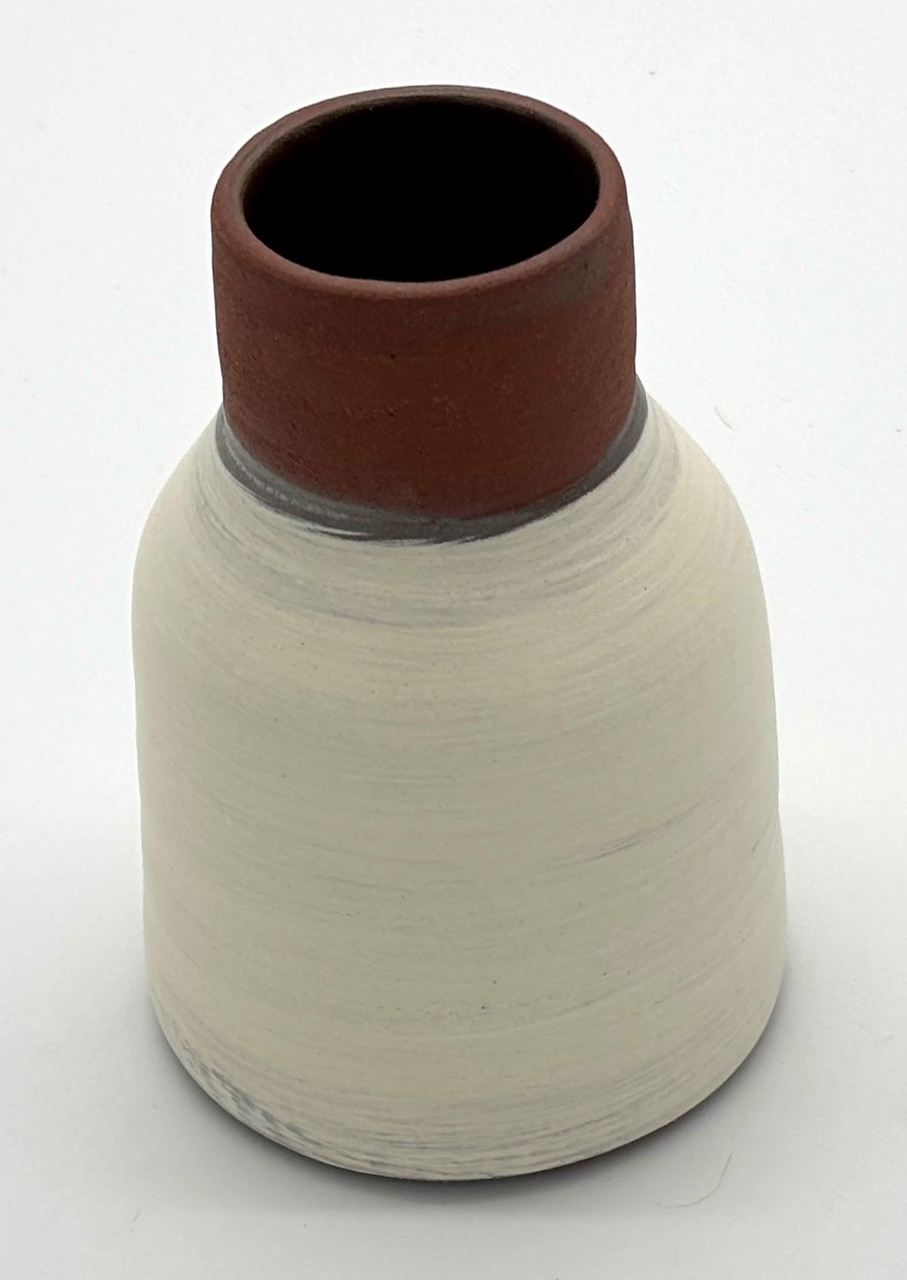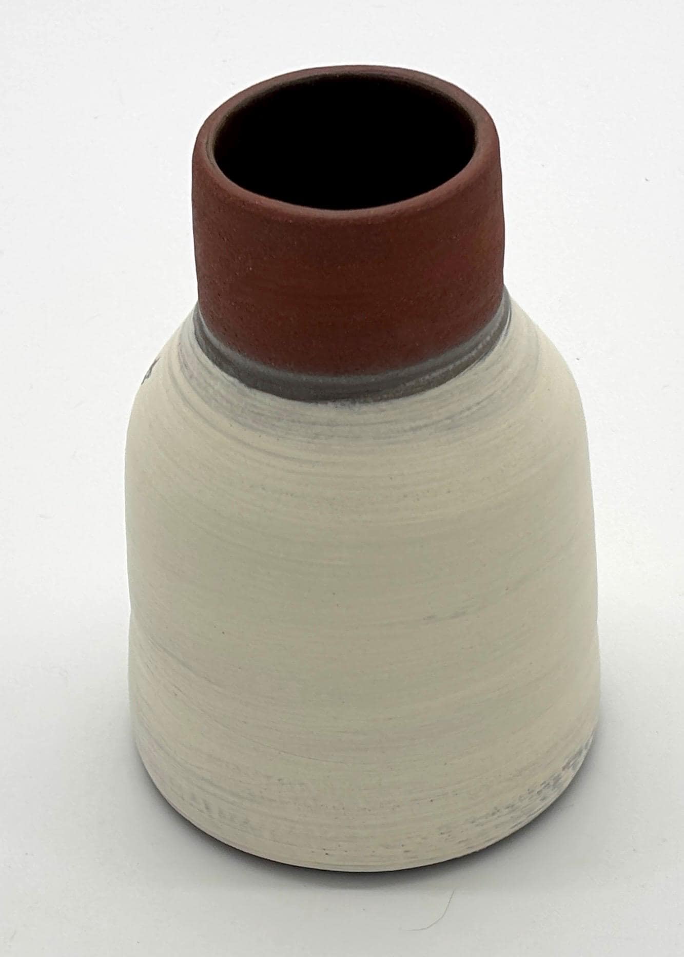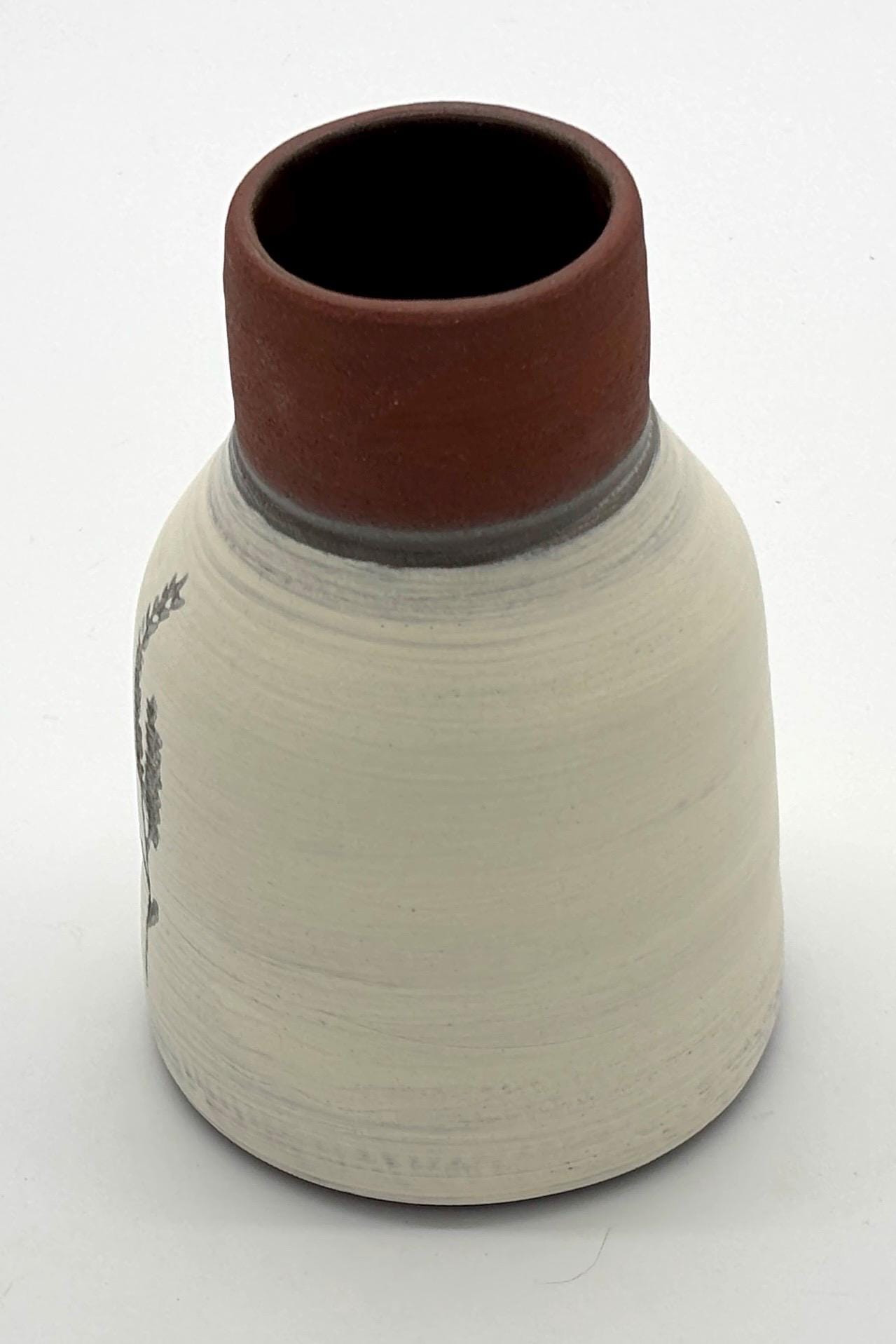 Diese handgetöpferte kleine Keramikvase aus dem Studio MABA ist ein echtes Unikat. Ihre Form wirkt bewusst schlicht, fast zurückhaltend – und genau darin liegt ihre Stärke. Sie fügt sich nicht nur ein, sie gibt dem Raum Ruhe.
