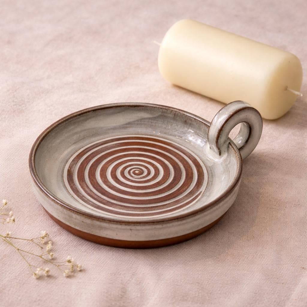 Dieser handgefertigte Kerzenteller bringt genau diese ruhige, warme Atmosphäre in dein Zuhause.