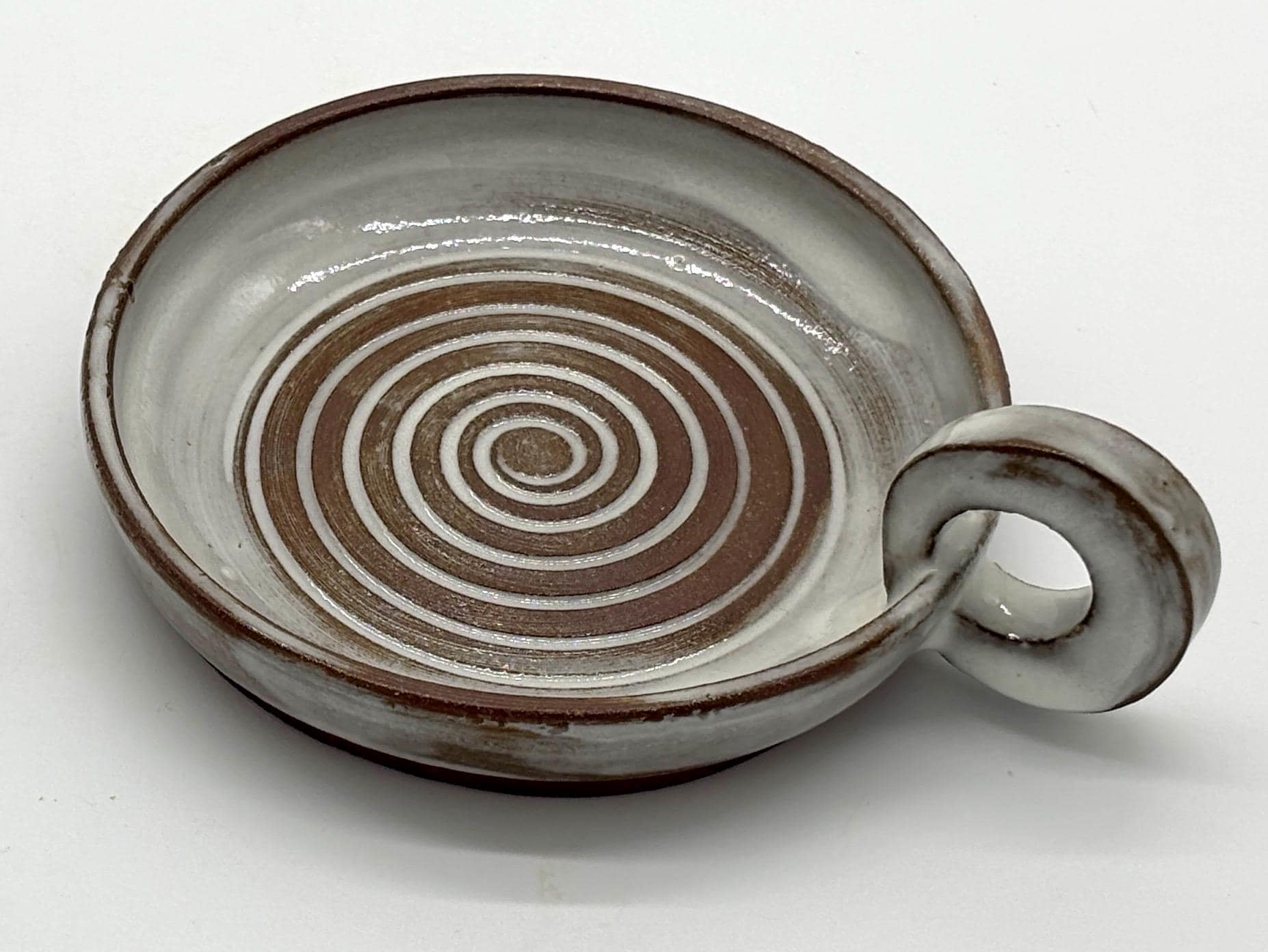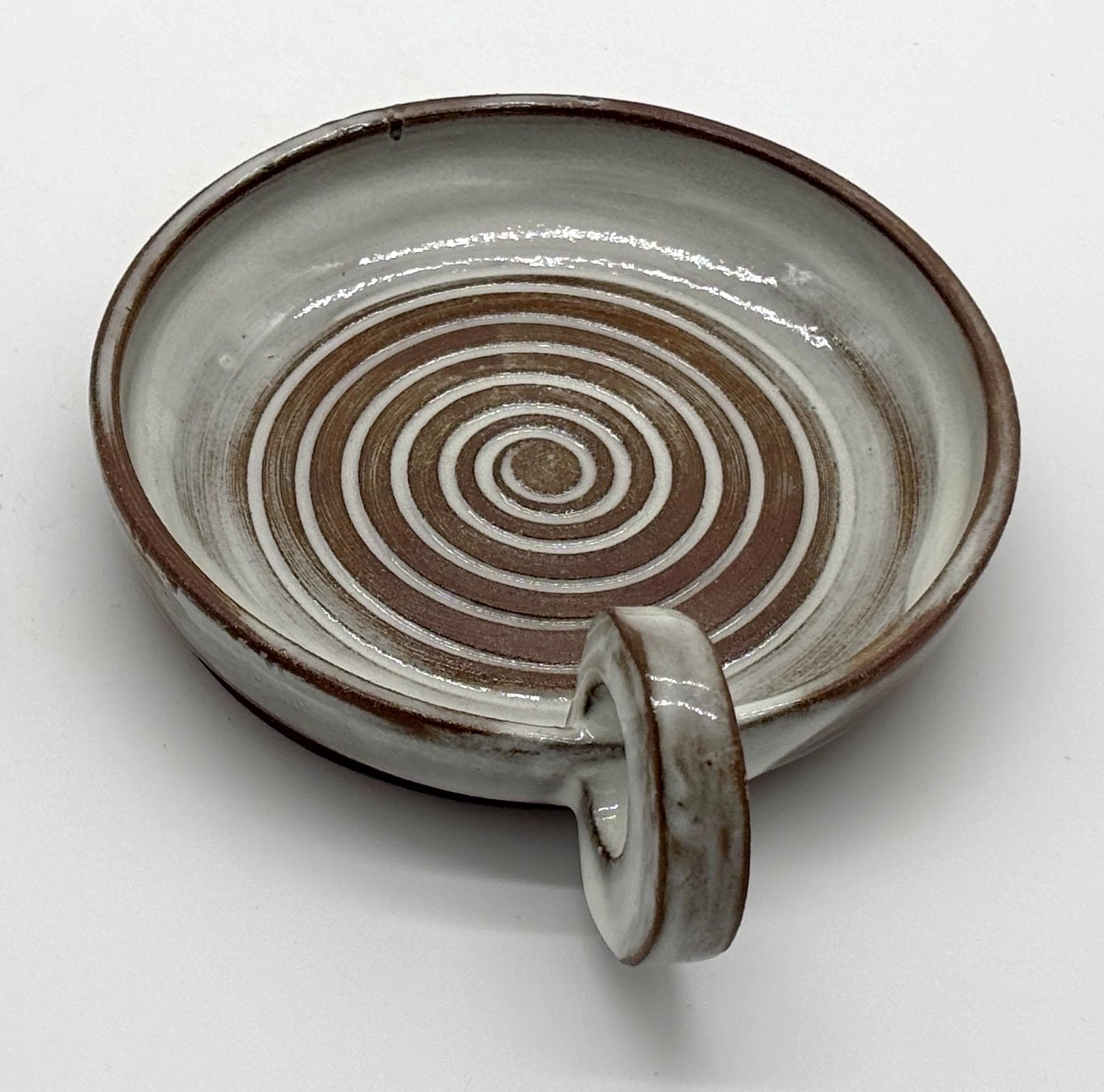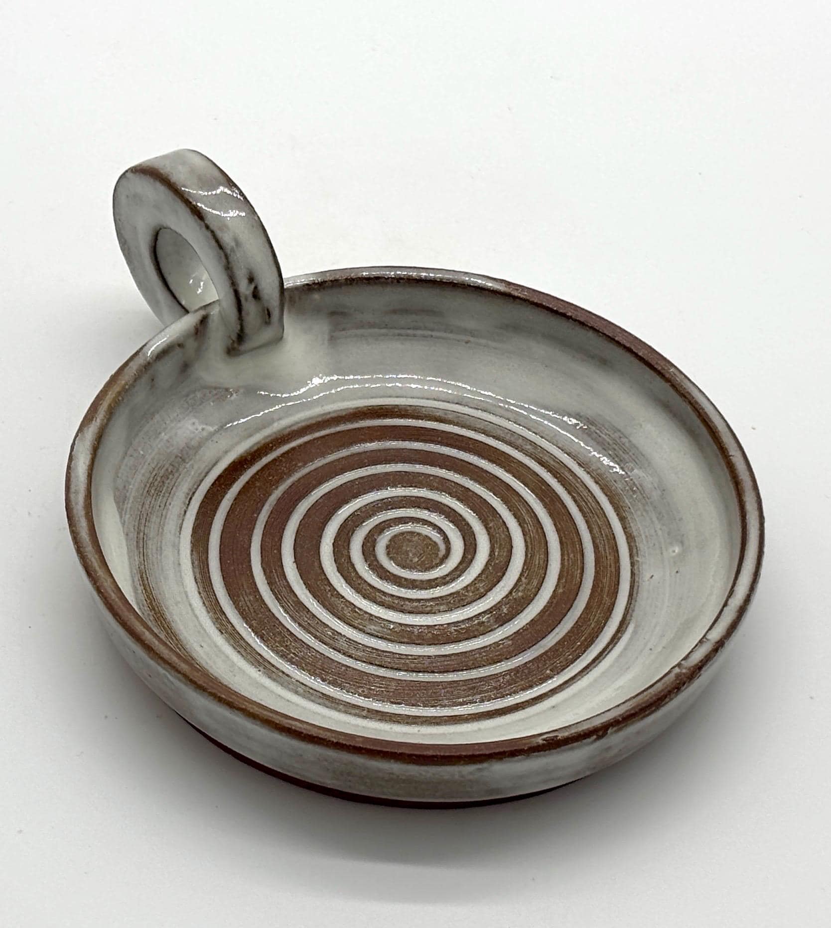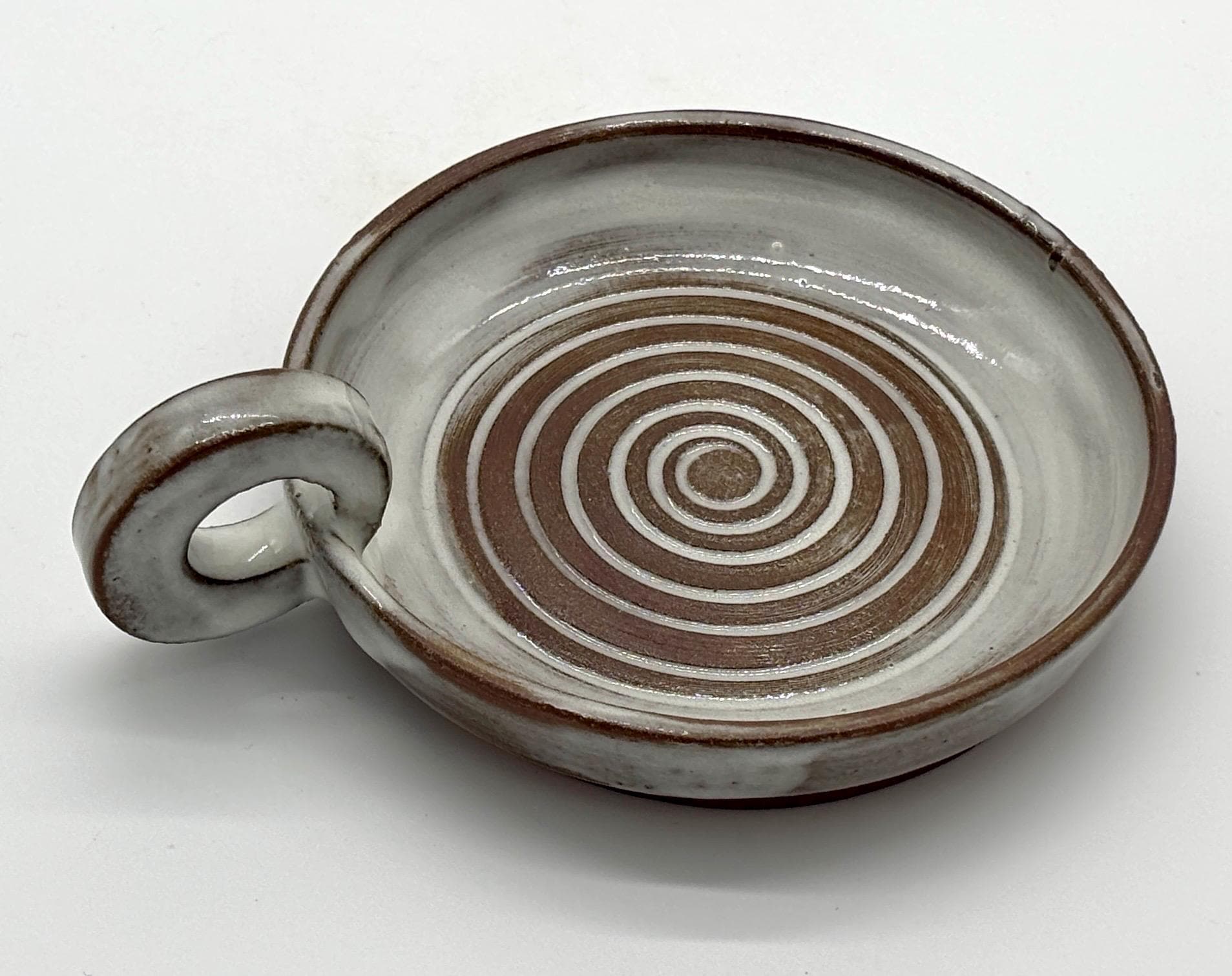 Das feine Spiral-Muster im Inneren bleibt bewusst sichtbar und verleiht dem Teller eine sanfte Bewegung. Die helle Glasur trifft auf den natürlichen Tonrand – eine Kombination, die Ruhe ausstrahlt und sich harmonisch in viele Einrichtungsstile einfügt.