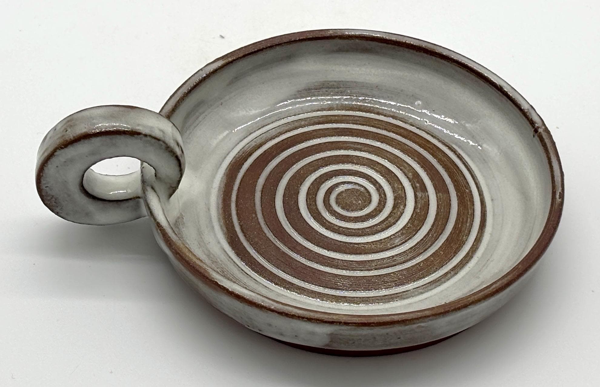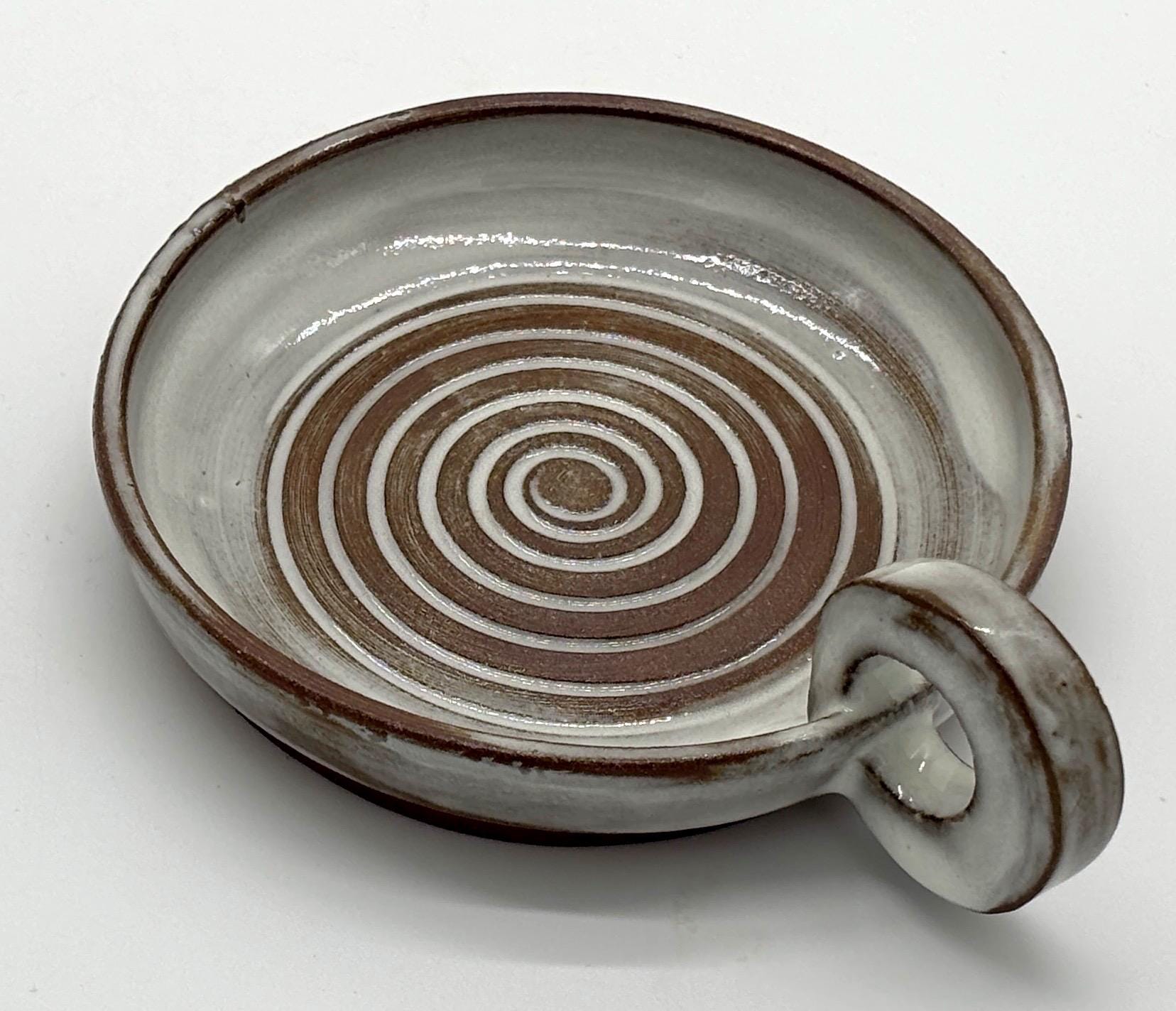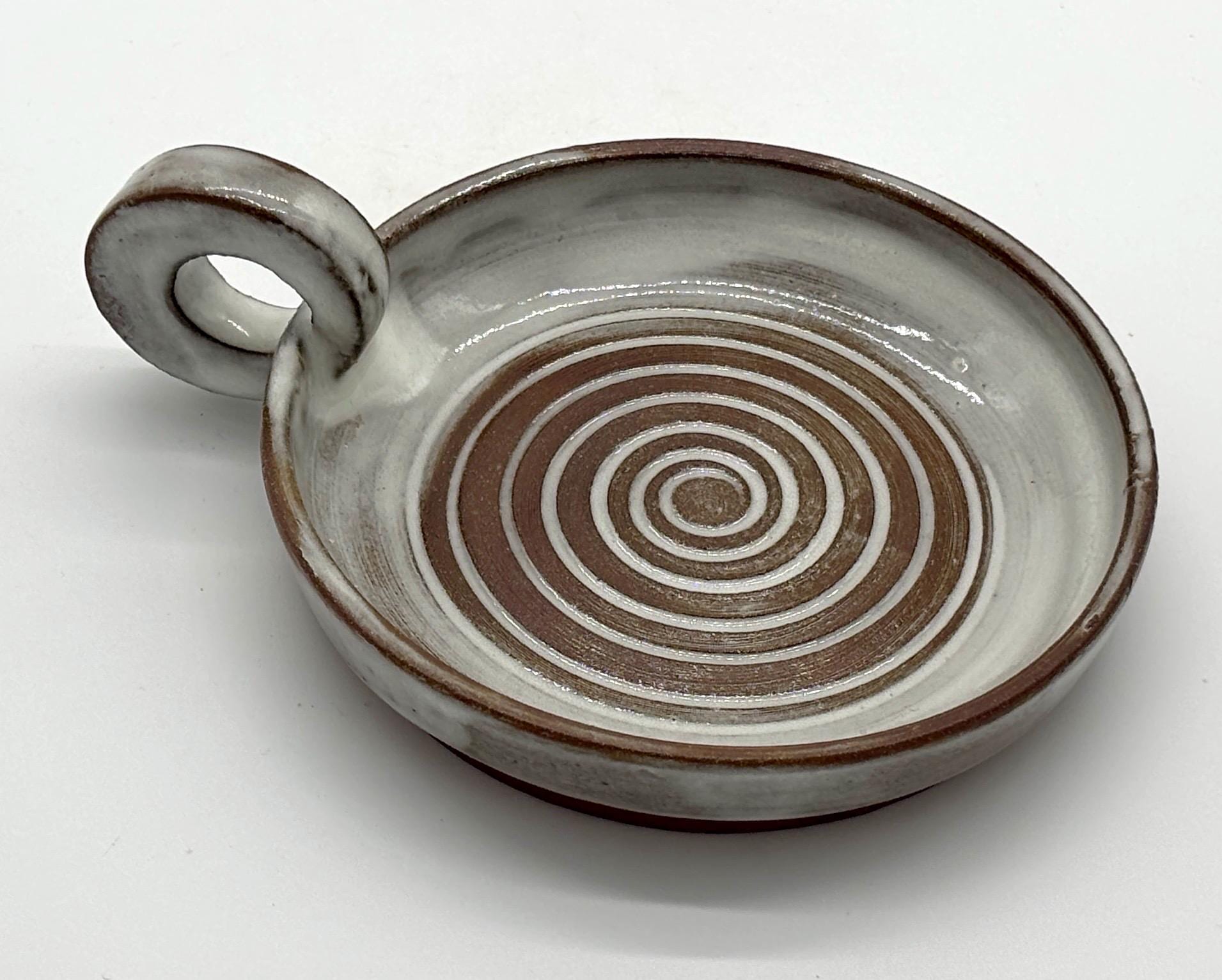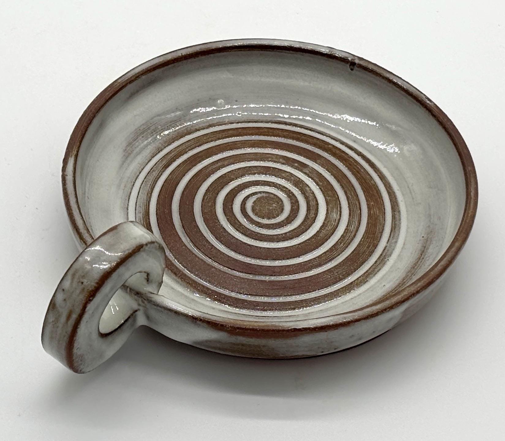 Das feine Spiral-Muster im Inneren bleibt bewusst sichtbar und verleiht dem Teller eine sanfte Bewegung. Die helle Glasur trifft auf den natürlichen Tonrand – eine Kombination, die Ruhe ausstrahlt und sich harmonisch in viele Einrichtungsstile einfügt.