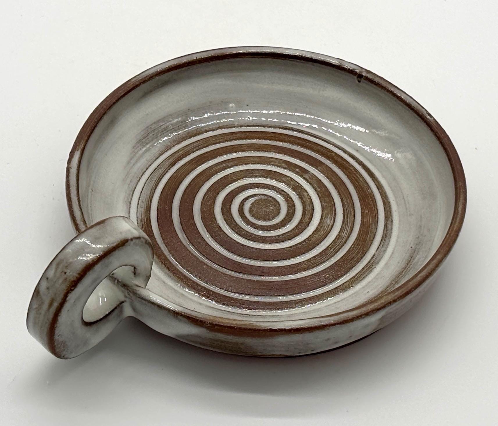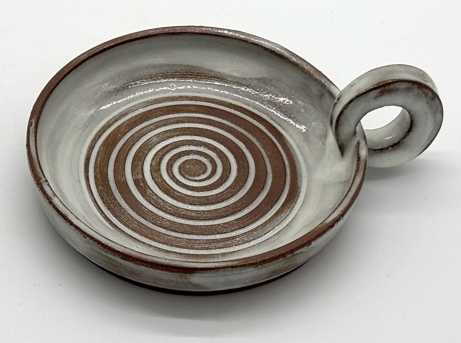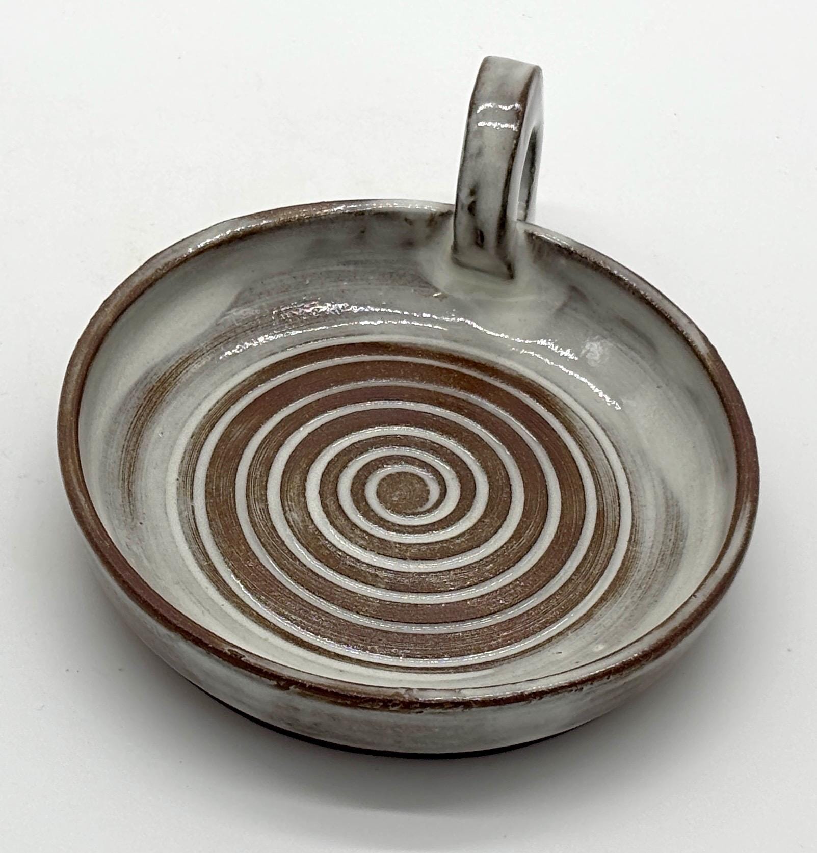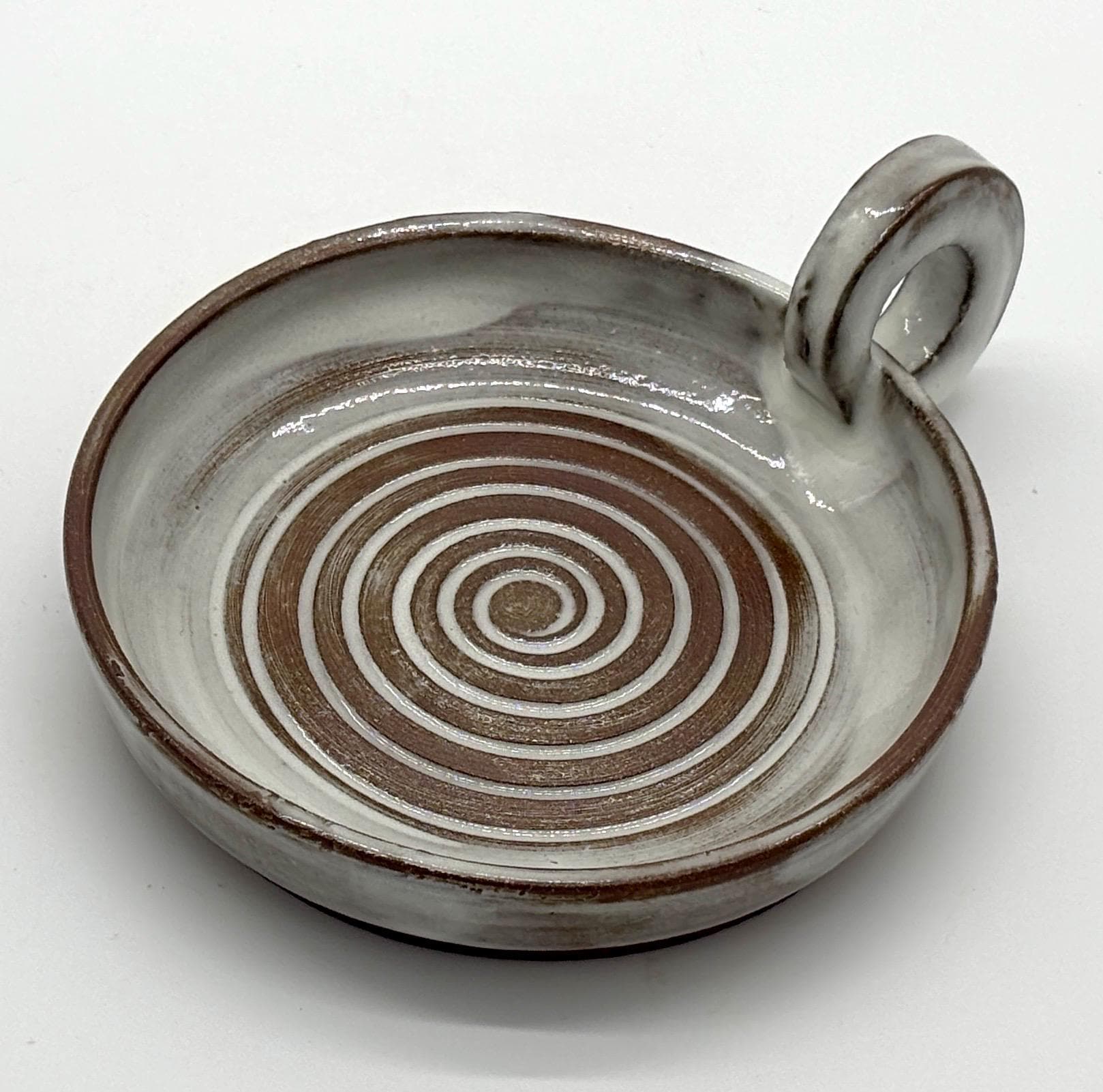 Das feine Spiral-Muster im Inneren bleibt bewusst sichtbar und verleiht dem Teller eine sanfte Bewegung. Die helle Glasur trifft auf den natürlichen Tonrand – eine Kombination, die Ruhe ausstrahlt und sich harmonisch in viele Einrichtungsstile einfügt.