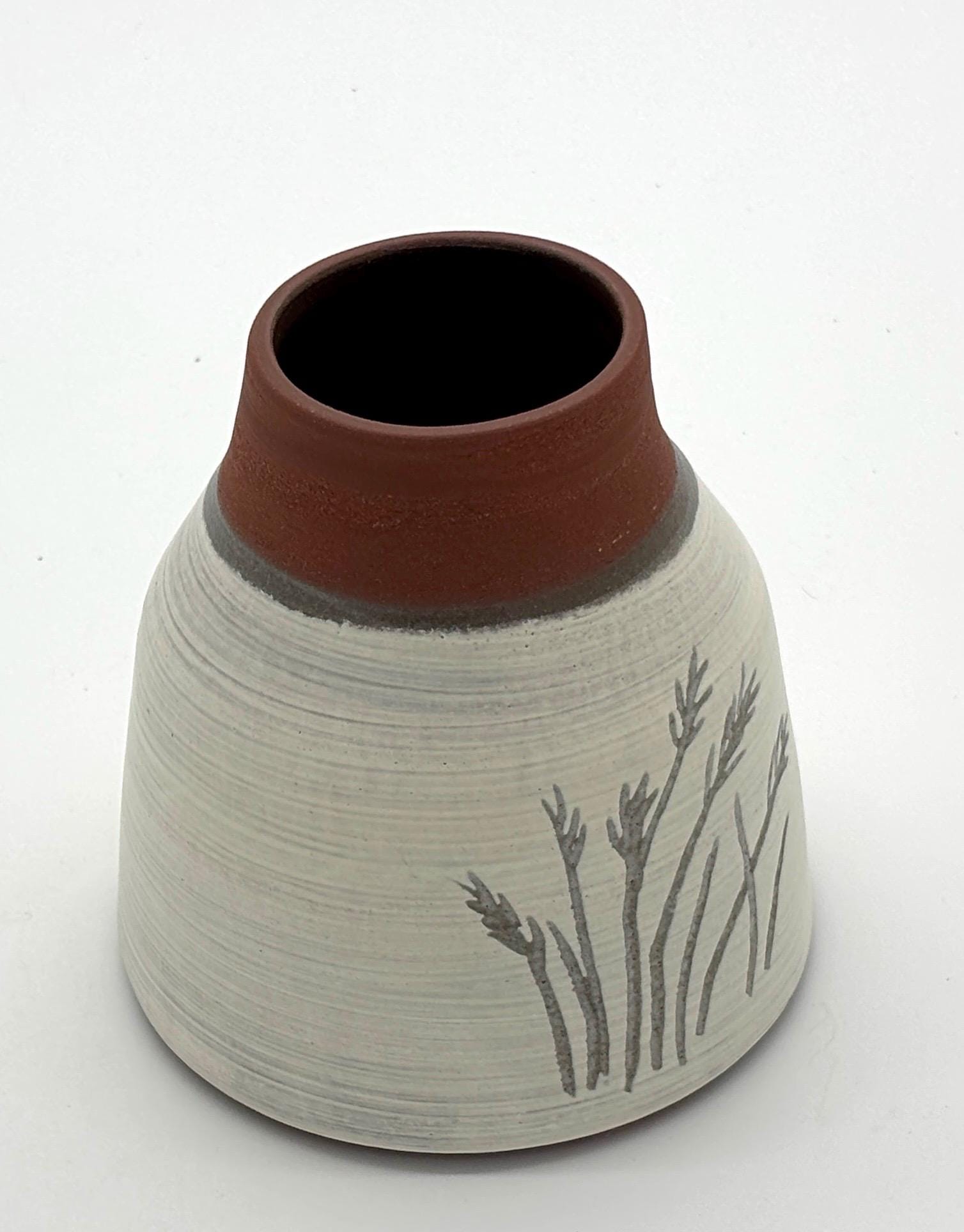 Vasen aus dem Grubenbrand und Raku sind nicht wasserdicht. Sie eignen sich für Trockenblumen oder als dekoratives Objekt.