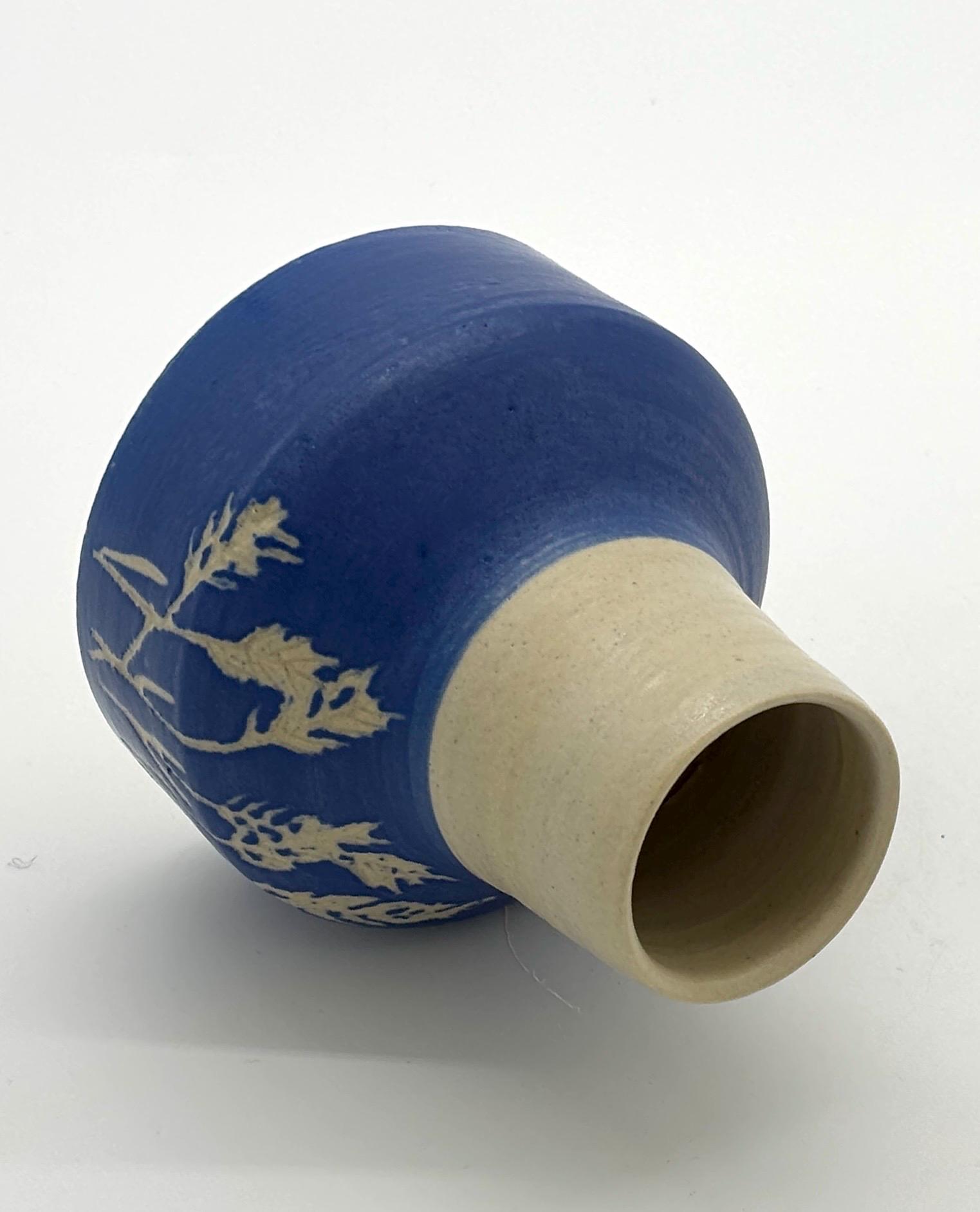 This blue ceramic vase has a calming effect – yet it has a strong presence.